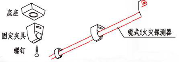 線(xiàn)型感溫火災(zāi)探測(cè)器在頂部安裝時(shí),可采用帶底座的卡具、掛鉤等固定。
