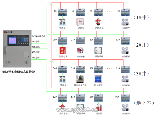 根據(jù)智能化管理要求,需要對整個(gè)商場綜合樓的消防設(shè)備供電電源的工作狀態(tài)進(jìn)行全過程連續(xù)監(jiān)測、集中控制和統(tǒng)一調(diào)度。