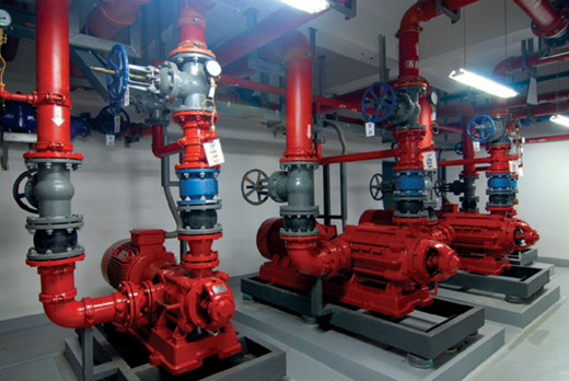 消防水泵的選用,設(shè)計人員往往按計算的室內(nèi)消火栓或噴淋的用水量和揚程選擇一用一備的消防泵。在規(guī)范上這樣設(shè)計沒有問題,但是在實際使用和建設(shè)投資上存在難度和投資過大。如果室內(nèi)消火栓和噴淋的用水量和揚程相差不大時,可以共用一臺備用泵,且按大一臺消防泵的工作能力。還有一種情況,消防泵的功率過大(如110Kw或以上),在電氣配電設(shè)計中,對于水泵的起動電流要比工作電流大5~6倍,這樣無形地加大了發(fā)電機的容量。對于這種情況應(yīng)將一用一備改為二用一備,用兩臺一半流量同揚程的水泵代替一臺大流量的消防泵。