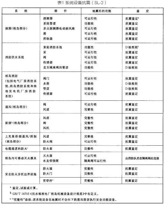 核電廠(chǎng)的火災(zāi)自動(dòng)報(bào)警系統(tǒng)需滿(mǎn)足相關(guān)質(zhì)保等級(jí)的要求并且系統(tǒng)在運(yùn)行階段要接受定期試驗(yàn)檢查,另外,所有設(shè)備應(yīng)經(jīng)過(guò)抗震試驗(yàn)鑒定并能承受極限安全地震(SL-2)荷載,且保證其可運(yùn)行性(見(jiàn)下表1)。