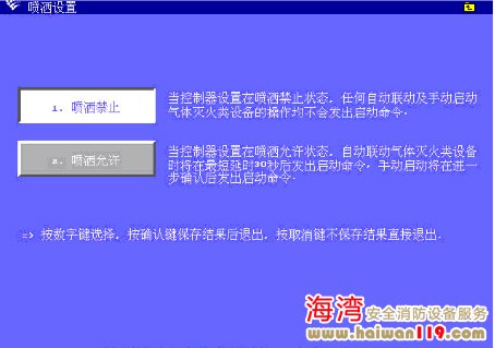 在氣體噴灑允許狀態(tài),氣體滅火設(shè)備才可以被手動(dòng)啟動(dòng)和自動(dòng)聯(lián)動(dòng)。否則啟動(dòng)氣體滅火設(shè)備的聯(lián)動(dòng)條件成立后,氣體滅火設(shè)備不會(huì)被啟動(dòng);手動(dòng)啟動(dòng)氣體滅火設(shè)備時(shí),沒(méi)有響應(yīng)。