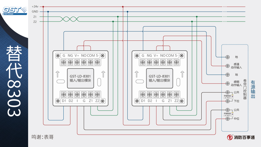 1、海灣8301模塊可以替代海灣的8303模塊控制防火卷簾,兩個8301模塊相當于1個8303模塊。