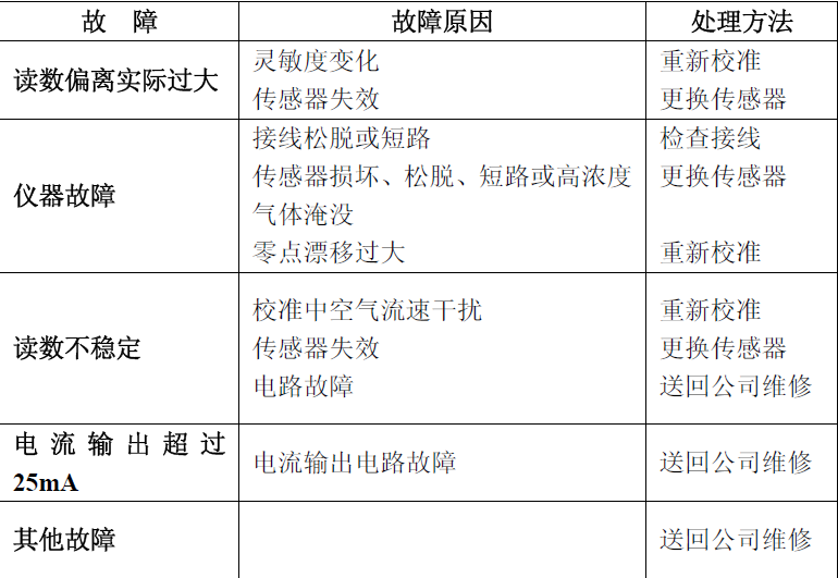 消防器材都有一定壽命的,在使用一段時(shí)間之后就會出現(xiàn)這樣或那樣的問題,有毒氣體探測器也是如此。安裝有毒氣體探測器,運(yùn)行一段時(shí)間之后,可能會出現(xiàn)一些常見的故障,下面這張表就將有毒氣體探測器的常見故障以及相關(guān)處理方法列舉出來了,僅供大家在遇到有毒氣體探測器故障時(shí)參考。