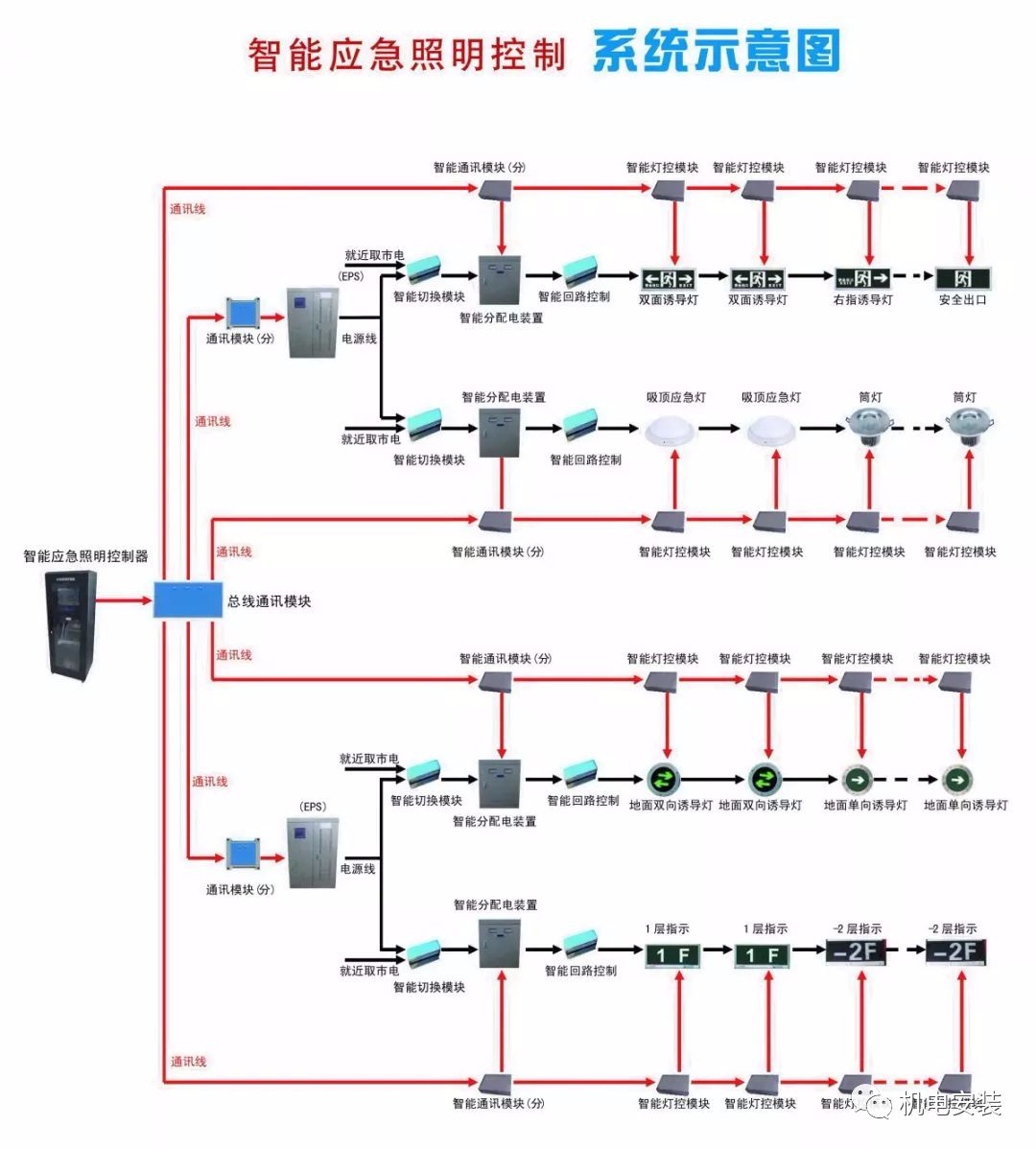 1.集中控制型系統(tǒng),是指系統(tǒng)設(shè)置應(yīng)急照明控制器,由應(yīng)急照明控制器集中控制并顯示應(yīng)急照明集中電源或應(yīng)急照明配電箱及其配接的消防應(yīng)急燈具工作狀態(tài)的消防應(yīng)急照明和疏散指示系統(tǒng)。